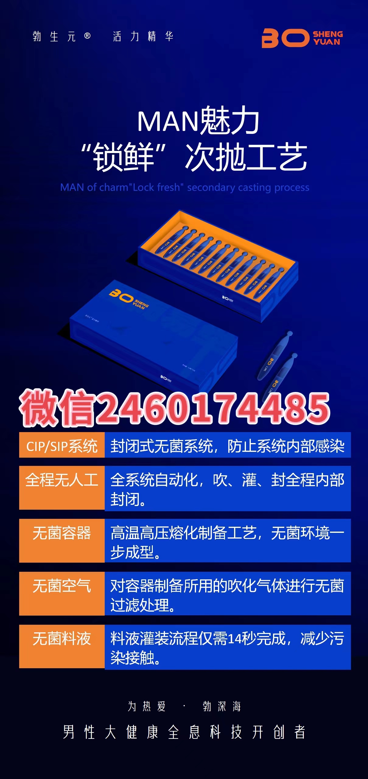 勃生元活力精华的主要成分为天然珍贵薬材海星、海参、水母、角鲨烷、贻贝黏蛋白、叉珊瑚、海茴香、当归、巴戟天、冬虫夏草、鹿茸等,采用先进的提取工艺提取其精华,去除其无用成分,保留原材料的活/性,此外,采用精细分子技术使产品更容易吸收,更快,更稳定。创造了勃生元活力精华绿色健康的特点!